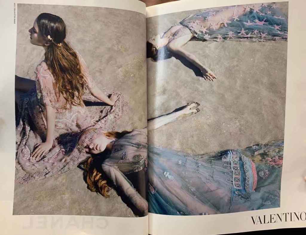 This is an advert of Valentino, is a spring session. The denotation in this advert is 3 girls is laying on the beach and enjoying the sun, and the dress they are wearing is the colour in summer like pink, shallow blue.